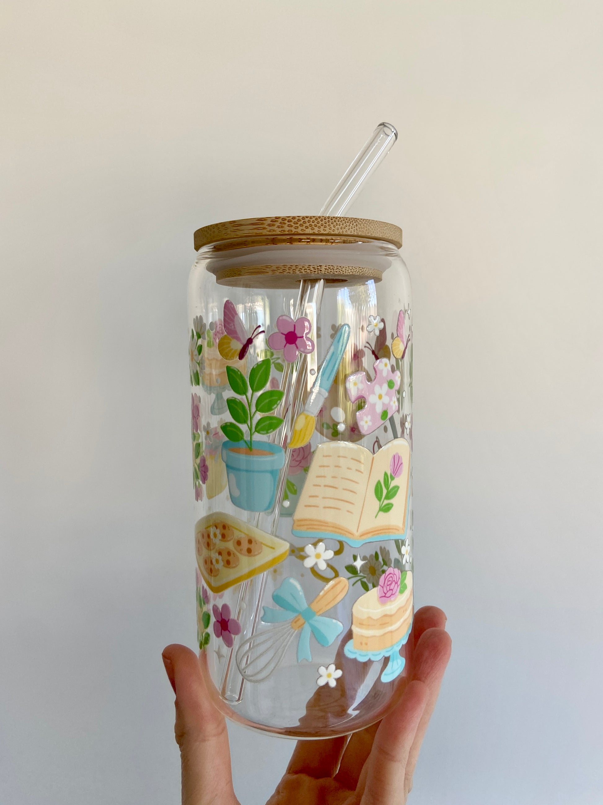 Pretty and practical, available in glass or plastic. Made to bring a little extra happiness to every sip - whether it’s for you or someone you love!